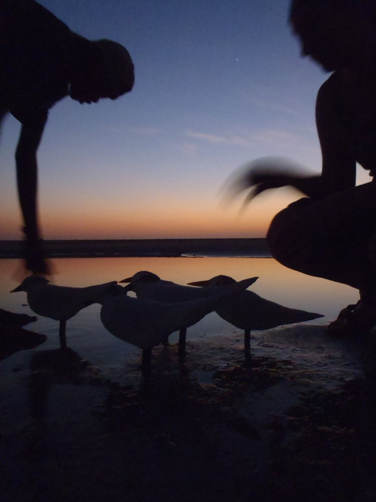 Setting tern decoys on the beach