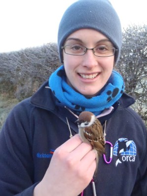 A hazy sun rose through a cold mist covering white, frozen fields surrounding the village of Feltwell, Norfolk as five intrepid ringers headed for one particular corner of the fields. Brown hare’s scarpered, racing away in the pink haze, as we approached this corner where millet has been spread throughout the winter months and where large flocks of finches come to feed on a regular basis.