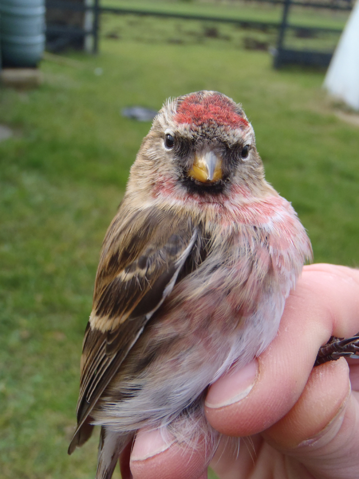 Interesting birds from today’s catch include a goldfinch that was originally ringed in the adjacent valley. Plus two lesser redpolls, which rather than having the usual red spot on the head, and in the case of males on the breast, were yellow!