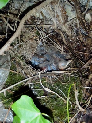 Having waited for the rain to pass, we approached the wall of ivy where this nest is hiding with caution and a little trepidation, hoping the chicks had survived the down pour and plummeting temperatures of recent days.