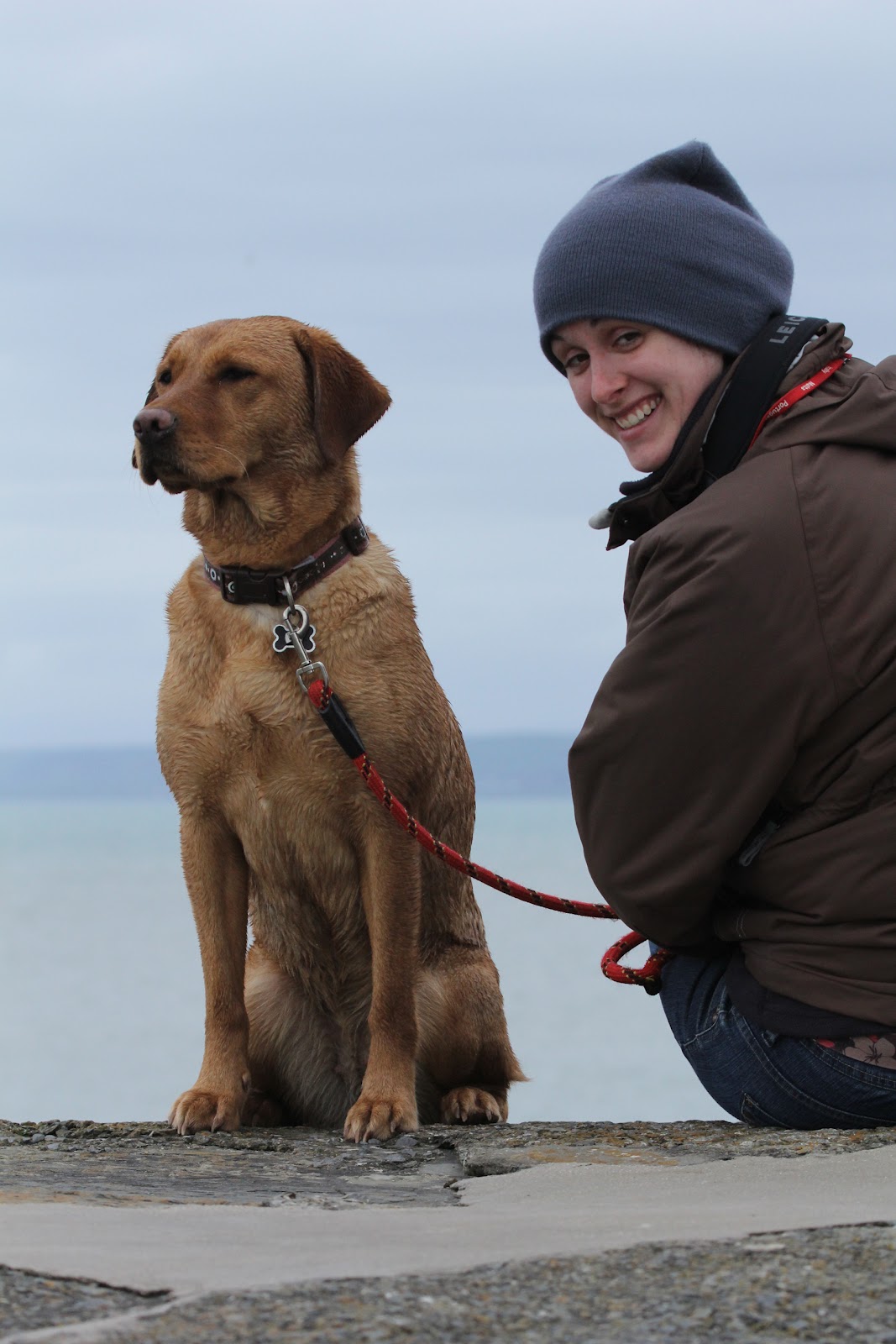 | Me and Barley, watching dolphins from the quay wall… although Barley seems to be facing the wrong way! |