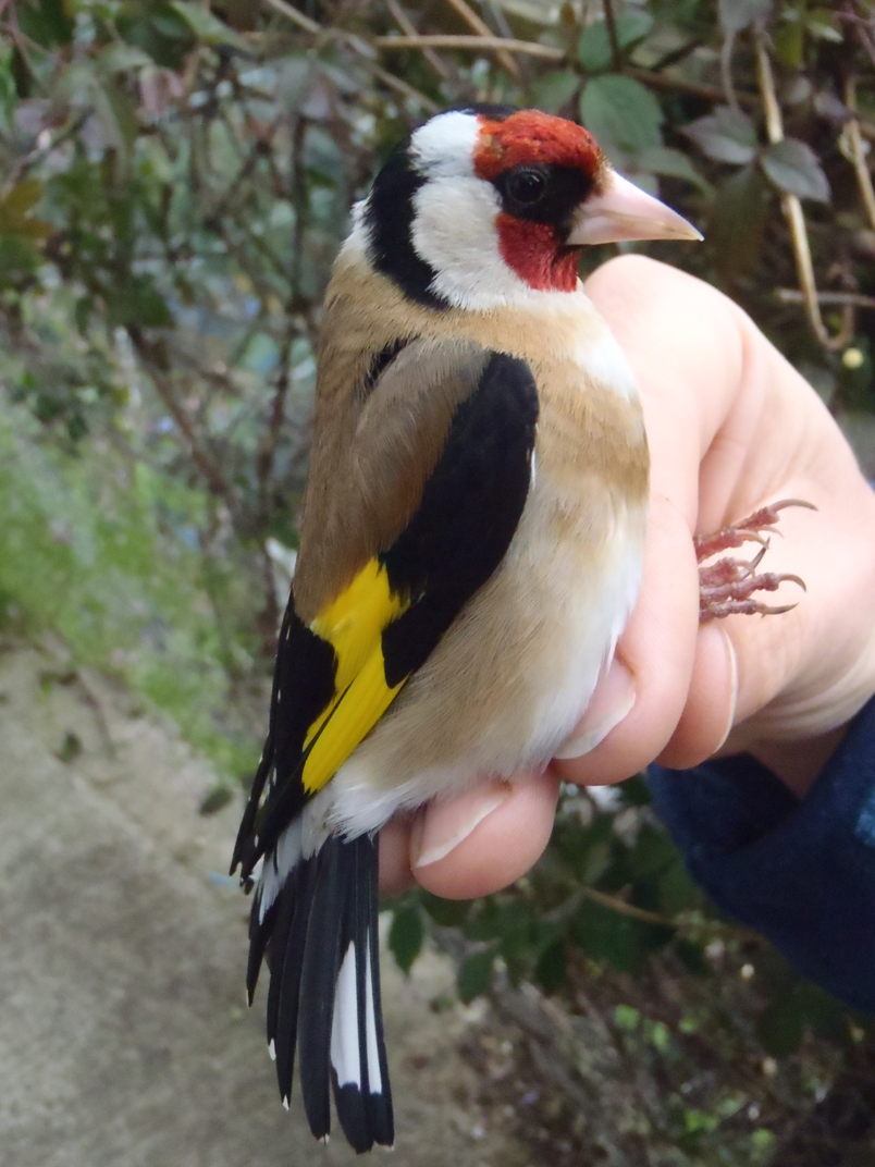 Ringing provides invaluable information on the movements of birds, both within the country and between countries, and it is every ringers dream to catch a bird with a foreign ring on. After ringing in the garden in Garth, Wales for the past four years and catching over 160 goldfinch, we finally caught one with a ring we had not put on ourselves! More than that it wasn’t even put on in this country! Ring number 11300397 had a Brussels address on. This goldfinch, at some point in its life, had been caught and ringed in Belgium and then flew east across the southern North Sea and England to our garden in Wales.