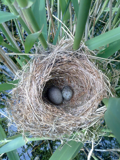 The evening sunlight dappled the pools at, yep you guessed it Cranwich J The resplendent greens, browns and gold of the bushes and trees shone in the golden, evening light, their reflections shimmering in the calm, clear waters. After a day at work we headed to the reed bed in order to check some of the reed warbler nests and ring any broods that were old enough. Calculating the age of nestlings is important for ringing the chicks, too young and the ring will slip off the foot, too old and they are liable to go for walkies! One nest today had an extra special inhabitant… a cuckoo chick!