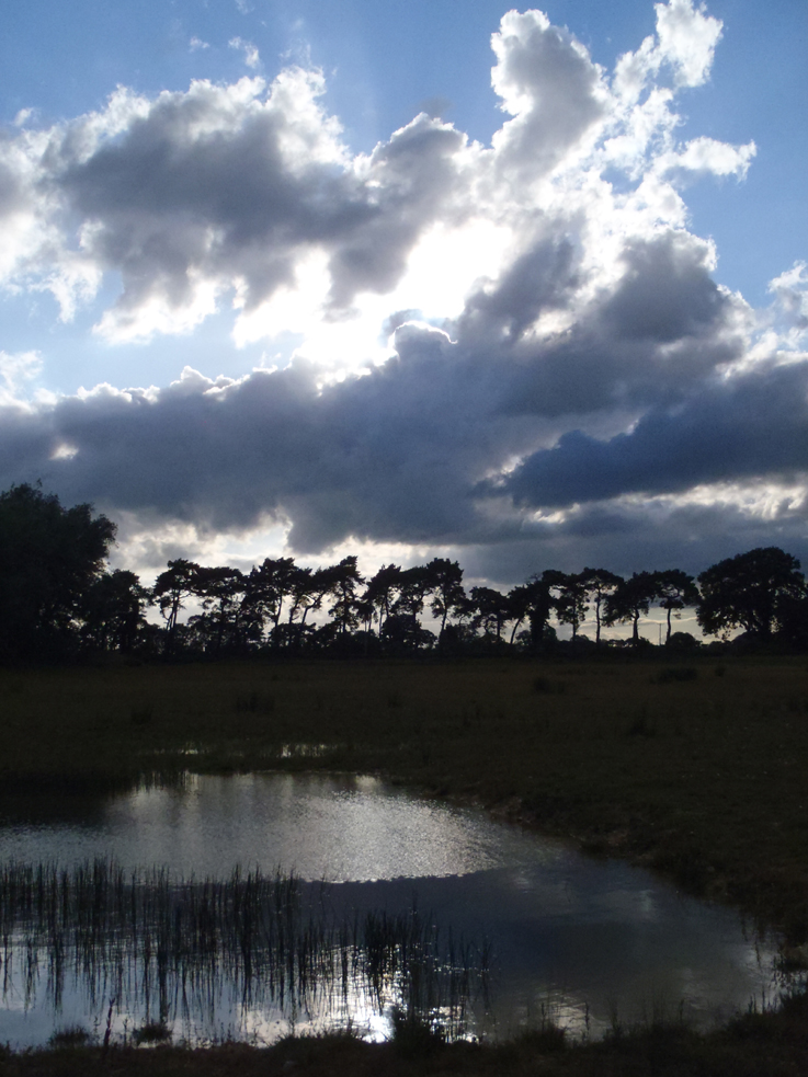 Dusk was falling over the reed bed at Cranwich, the sky a washed out pale blue, the hazy clouds highlighted by brilliant gold lending definition to the swirling edges. As the evening progressed the sky turned dusky pink. Once again the site is flooded, the dark water rising over the banks and creating rivers along the paths that shimmer in the evening light.