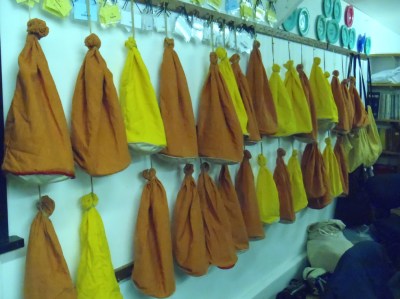 | Sand martins settled in for the night in their roost bags – 5 birds to a bag |