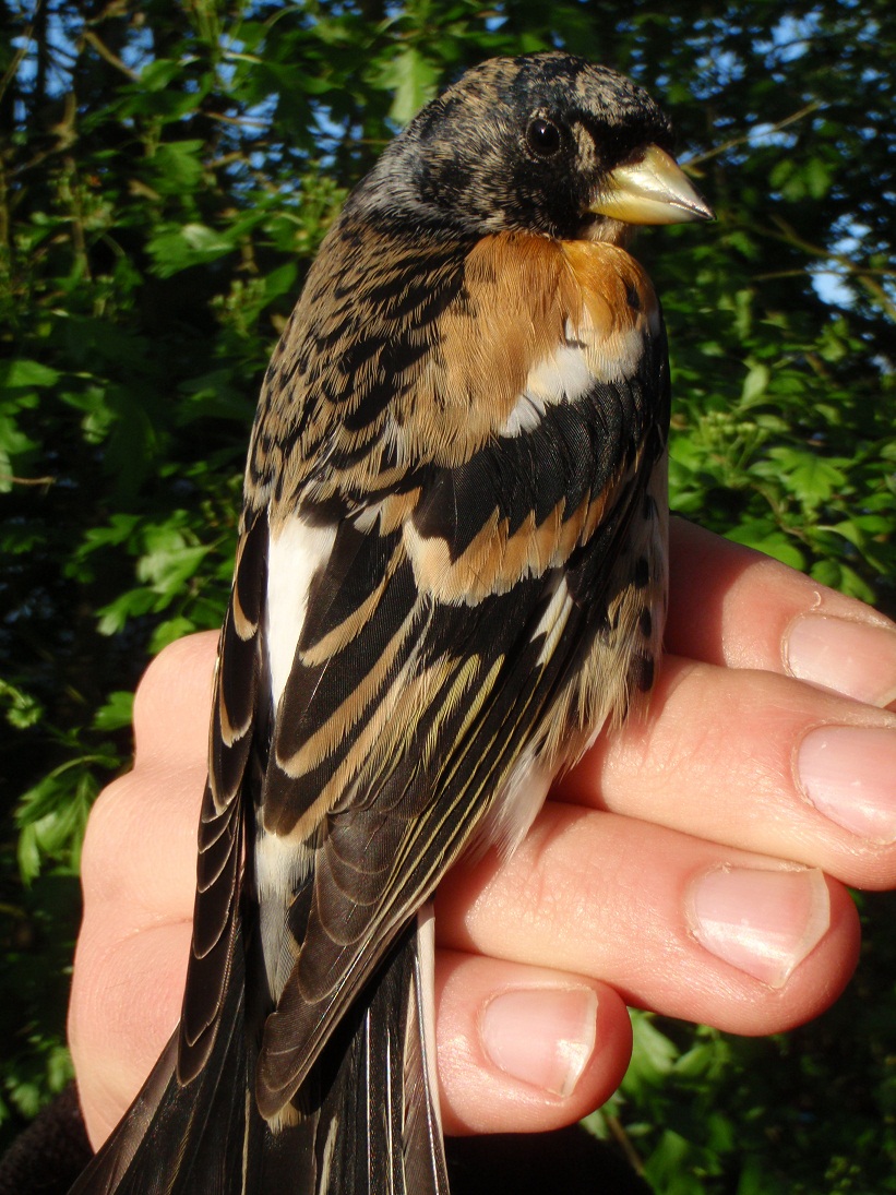 | Stunning male brambling – heading back and forth between Lodge Farm and Scandinavia |