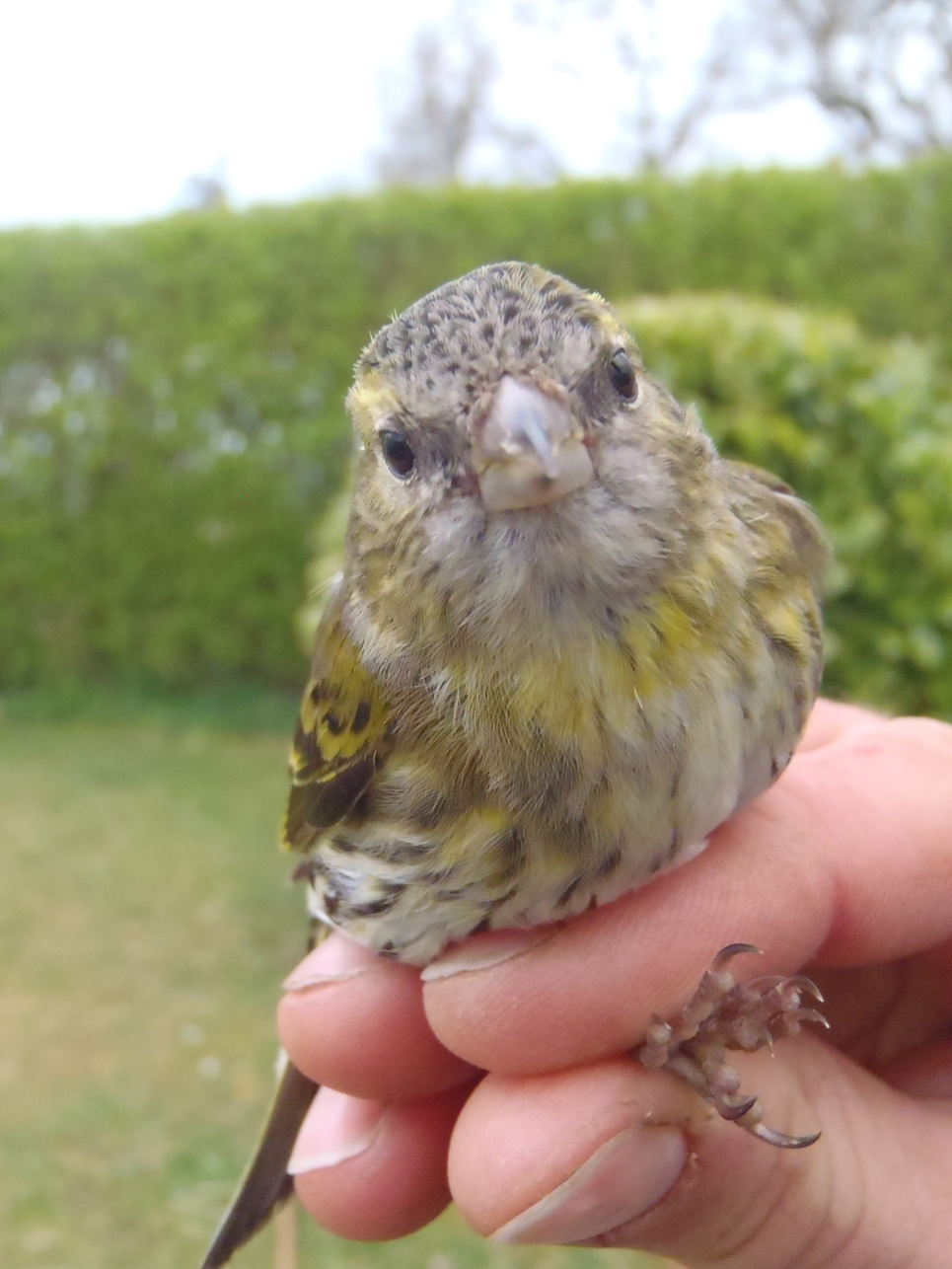 | Female siskin – some had brood patches others were piling on fat ready to leave |