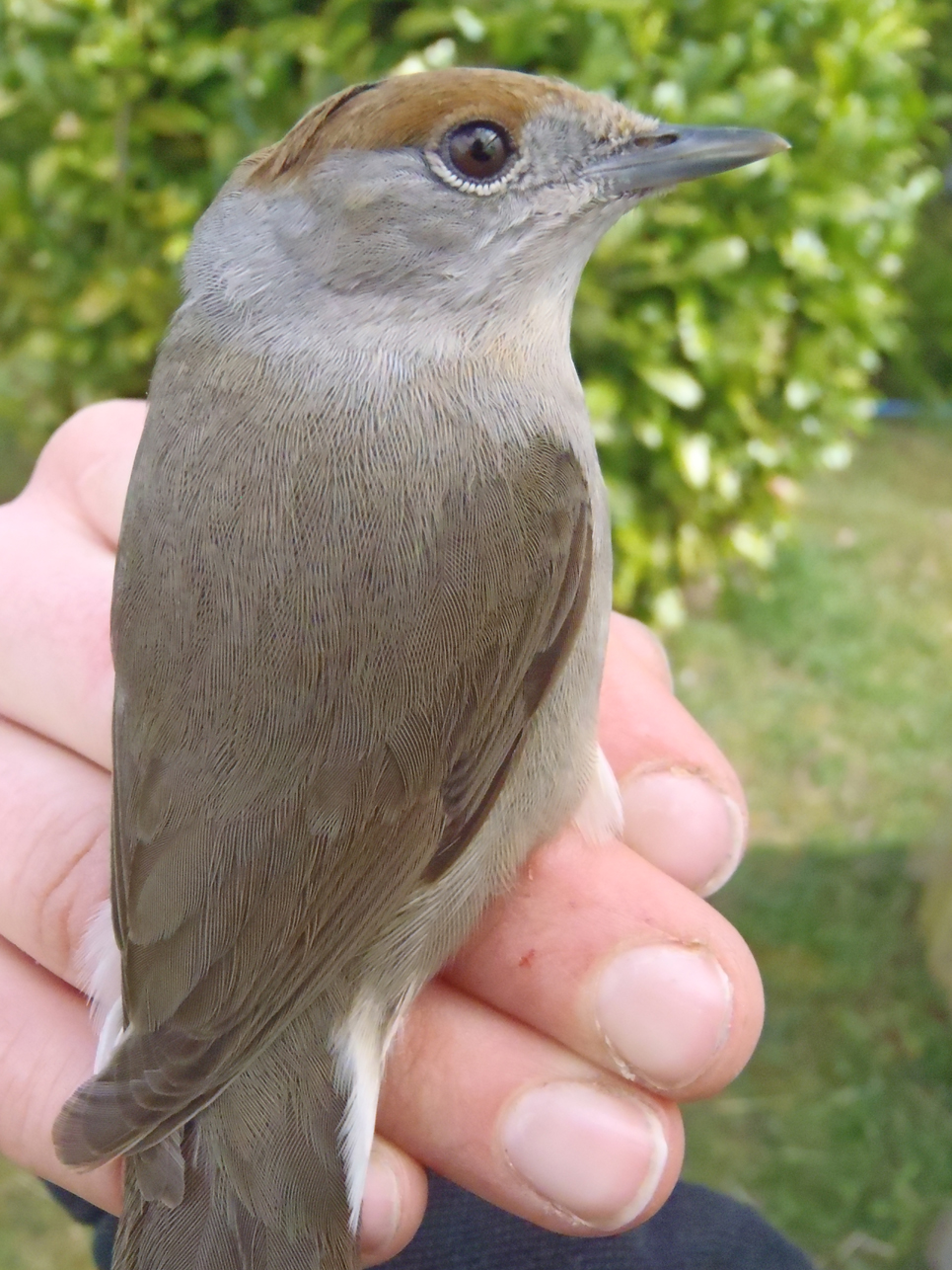 Summer migrants have also made an appearance; swallows recently returned from Africa, dip and dive over the cottage roof, while in the net we catch a female blackcap.
