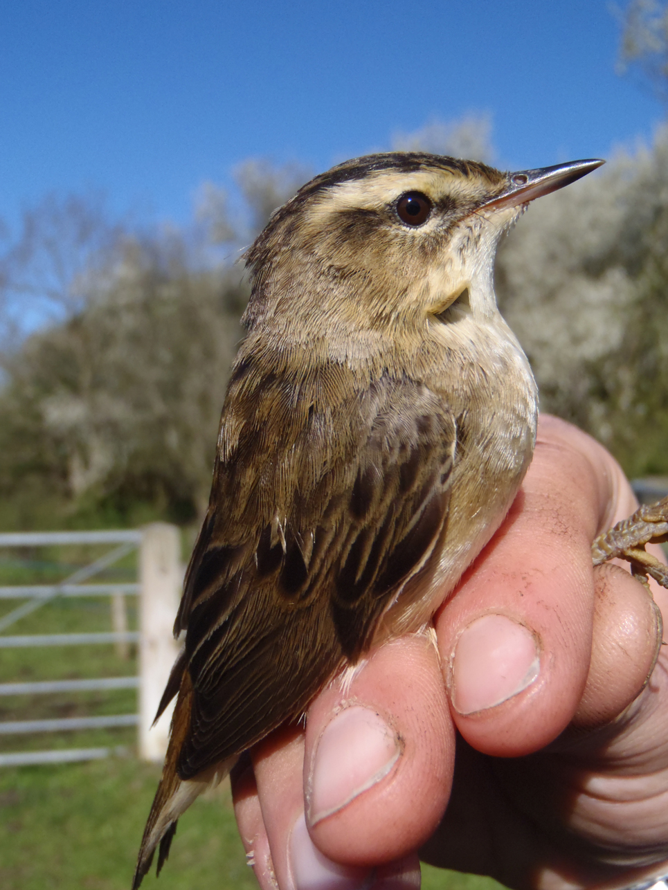 The ringing is good, enough to keep us ticking over, with a catch of warblers only just returned from their wintering quarters. Willow warblers, garden warbler, sedge warbler and whitethroats all fresh from Africa, blackcaps from either northern Africa or southern Europe.