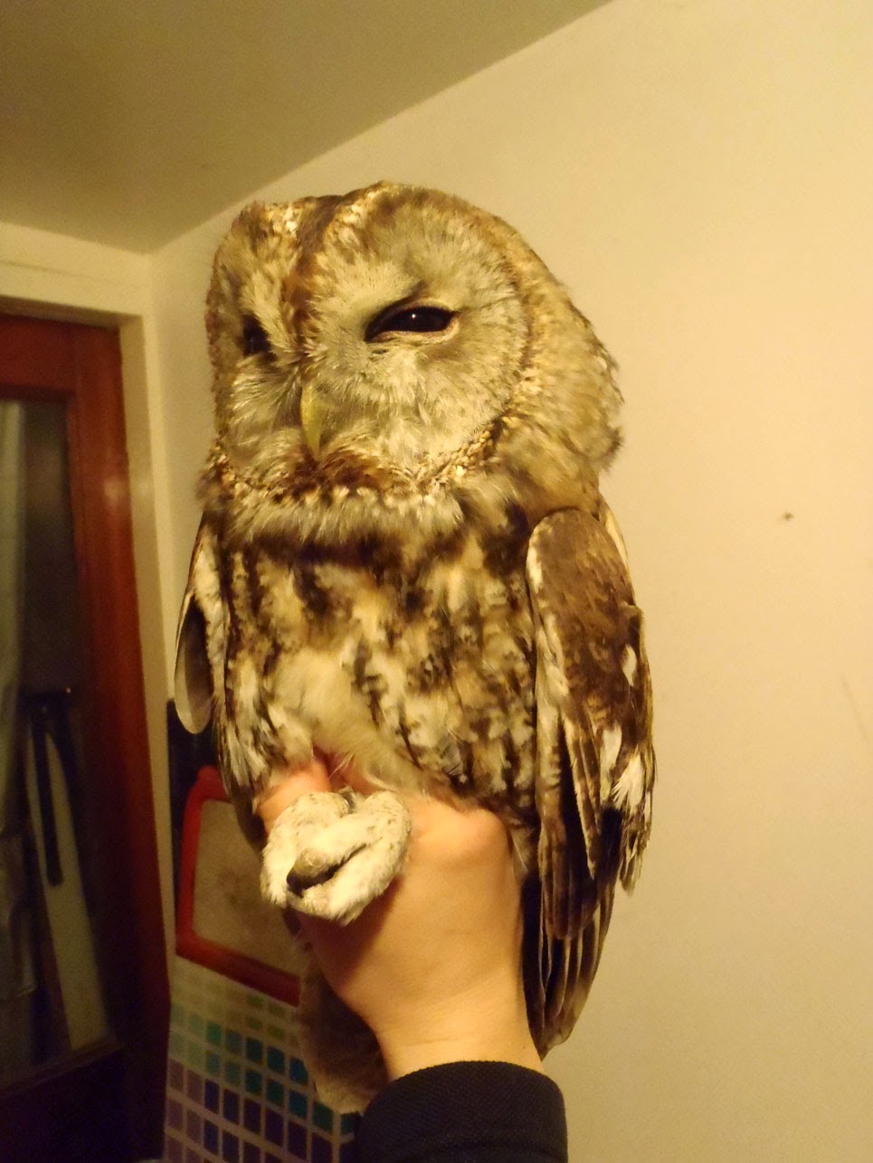 Oh what a bird. Beautiful streaked and mottled feathers of innumerable shades of brown to grey, so soft to the touch. Tiny white feathers cover the legs all the way to the gripping talons. A wide round face split by a narrow dark wedge that reaches the curved bill; with mysterious black eyes like two deep unending pools. It is sturdy yet light; it does not fight but holds itself proud and upright. Its eyes close at the inevitable light needed for processing but it is magnificent. Such grace and silent stealth encompassed in one beautiful bird. Closer examination reveals a comb-like leading edge to the flight feathers which breaks down the turbulence created as the wing moves through the air, muffling the sound and creating silent flight.