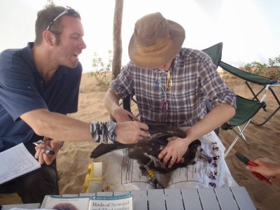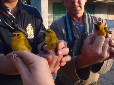 In the reeds and across the pools, we caught waders from Senegal thicknees, to snipe, African jacanas to spur wing plovers. Pied kingfishers, while occasionally teasing us and perching on top of the poles, were also caught in good numbers. Great reed warbler, painted snipe, malachite kingfishers, black faced quailfinch to name but a few of the colourful birds Africa had to offer. In the spiky scrub a whole different suite of birds, from northern red and yellow fronted bishops, red billed quelea and oriole warblers to lavender waxbills and red cheeked cordon bleus. Bold and brash, red crowed gonaleks let everyone know of their presence, while black crowned tchagra (a kind of shrike) garnered a high level of respect so as to avoid that hooked bill! Grey, cardinal and golden tailed woodpeckers provide an extra treat, while more unusual birds (in terms of catching) include lesser and greater honeyguide, Diedrick and Klaas’s cuckoo.