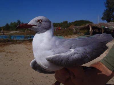 Then on the beach, the smell of smoking fish strong in the air, the sound of hundreds of local people bringing in the wooden fishing boats, transferring and gutting fish, fixing nets and building new boats. Amongst it all a bang that either brings them over or at least makes them look up from their work. A canon net, fired over a group of grey headed gulls. Surrounded by a crowd of interest the birds are gathered and ringed. While on team works through the gulls, another is catching red chested swallows that are swooping in and out of the buildings. More locals look on rather bemused, or come over to see what we are doing. Flick netting, a simple technique of basically a mobile mist net, carried by two people and hoisted up in different locations as the bird passes by. Simple, yet effective for species like swallows.