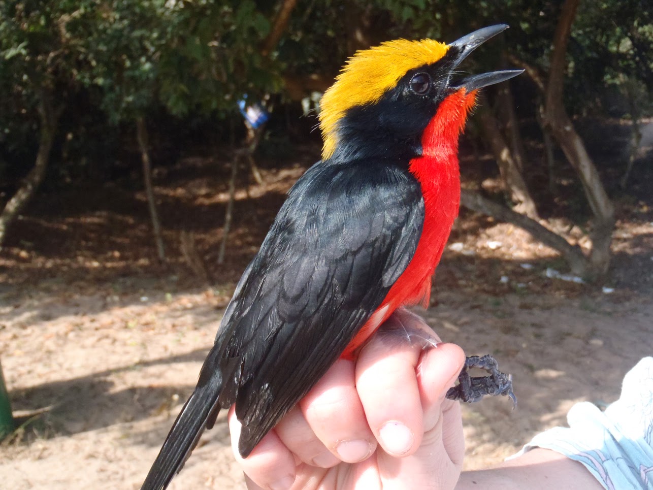 In the reeds and across the pools, we caught waders from Senegal thicknees, to snipe, African jacanas to spur wing plovers. Pied kingfishers, while occasionally teasing us and perching on top of the poles, were also caught in good numbers. Great reed warbler, painted snipe, malachite kingfishers, black faced quailfinch to name but a few of the colourful birds Africa had to offer. In the spiky scrub a whole different suite of birds, from northern red and yellow fronted bishops, red billed quelea and oriole warblers to lavender waxbills and red cheeked cordon bleus. Bold and brash, red crowed gonaleks let everyone know of their presence, while black crowned tchagra (a kind of shrike) garnered a high level of respect so as to avoid that hooked bill! Grey, cardinal and golden tailed woodpeckers provide an extra treat, while more unusual birds (in terms of catching) include lesser and greater honeyguide, Diedrick and Klaas’s cuckoo.