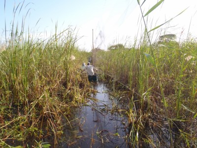 | Intrepid ways of getting nets into reed beds – using a boat! |