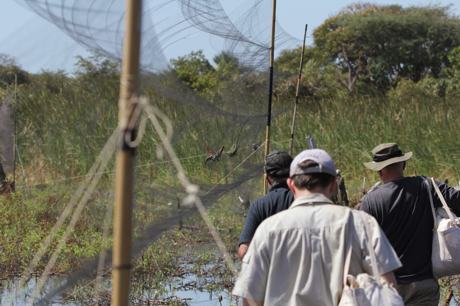 | Collecting blue-cheeked bee-eaters from the net |