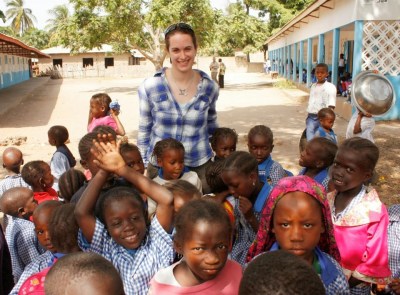 | Surrounded by smiling faces (well mostly!) at the school (Photo: Laura Blackburn) |