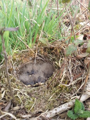 Knowing an area is good for breeding woodlark, seeing a pair there with the male’s sweet song of melancholy notes which includes a lu-lu-lu, giving the bird part of its scientific name Lullula arborea, is one thing. Finding its nest is a whole different ball game, one of patience and knowledge. Even knowing there is a nest within a few square feet in front of you, it is still hard to see, such is the excellent cryptic nature of nest and chick.
