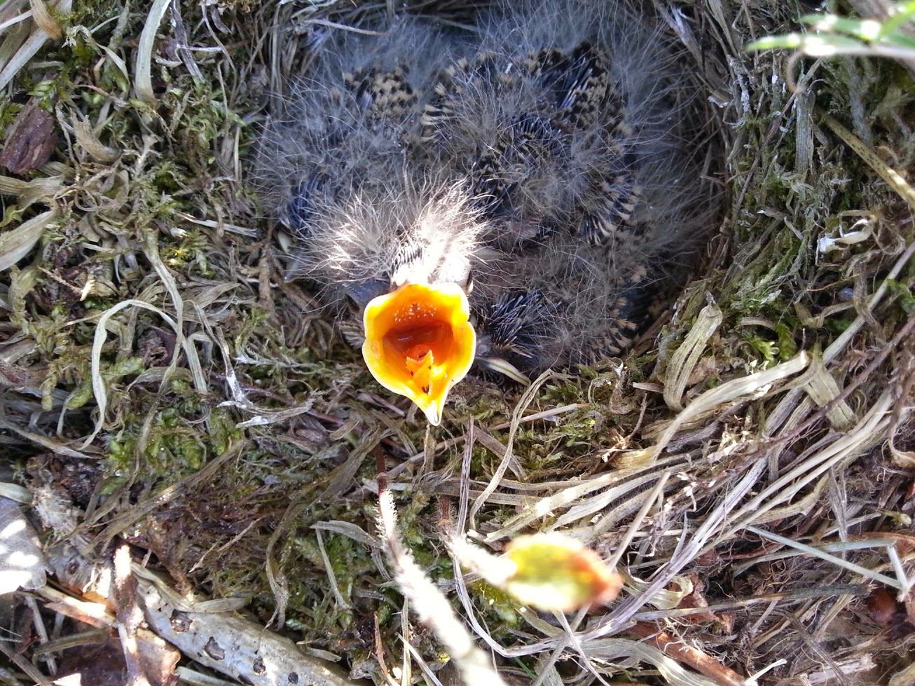 On returning these four chicks to their snug nest and stepping carefully away to a safe distance, we watch as both parent birds call with a soft ‘tlewee’ to each other, beaks full of recently foraged insects, before swooping in back to the nest. We turn to leave, happy birds, happy chicks, happy people.