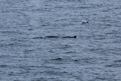 | Fin Whale and White-beaked Dolphin surface in unison |