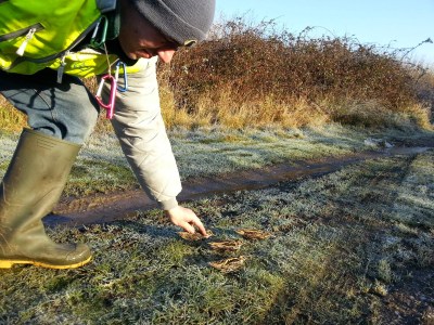 Winter had finally arrived. After months of mild, wet weather with the feeling of October rather than December, things had finally turned cold, crisp and frosty. It was still pitch black, the rather dim light of the head torch swept the bramble hedges and grassy banks, the frost glittering briefly in the torches beam. The grass beneath brand new Christmas wellies crunched, the ice breaking at the edges of puddles. The sky above was clear, stars sparkled in the inky black, while a hint of orange glowed on the horizon hinting at the lights of the nearby city. Slowly the inky black began changing through shades of deepest blue, cancelling out the orange glow, as dawn began to break. With enough light now to see, we walk the frozen grassy and muddy tracks between raised banks beyond which the ground dips into pools. The reeds and grass within which have been strimmed, maintained and managed for birds. Stretching across two such pools is a series of strategically placed nets. We climb the bank and look out over the pools, we walk down the slope and step down into the frozen water. It is not deep, the ice cracks as we slowly walk across, skirting piles of reed and grass, purposely left for birds to roost on just above the waters surface. Reaching the first set of nets we find they have done their job well!
