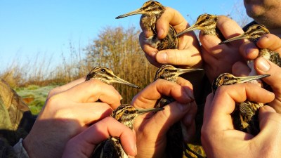 | Lee releasing the fourth of our seven Jack Snipe |