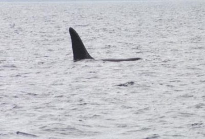 I watched spell bound as six whales approached, two with really tall dorsal fins. Most likely Aquarius and Comet, two of the males in the group, accompanied by females, likely to be Puffin and Occasus who usually travel with Comet and Aquarius respectively, although I cannot tell from my photos. Behind these came a very distinctive male called Floppy Fin, one of a very small percentage of wild Orca that have a bent over dorsal fin. Again a female travelled close to him, one I could not ID from my pictures but could have been Nicola, a female who is regularly seen with Floppy Fin and suspected to be his mother. In total there were six of them, moving at a steady pace, passing us and heading down the coast. I remember seeing Floppy Fin and the female tail slapping and milling around before also heading away.