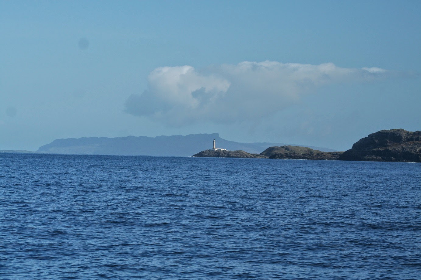 | Ardnamurchan lighthouse with the Isle of Eigg in the background |