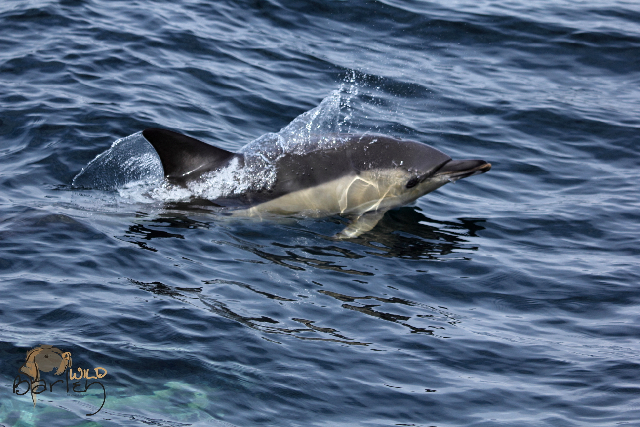 I can’t keep away from the sea and the next day sees me back on the boat for another trip. It is another gorgeous day, with calm seas and sunshine greeting us once more as we steam out of Tobermory and up the Sound of Mull. This time it is the sharp eyes of Andy Tait, a long term volunteer with Sea Life Surveys who spots a whale, a little further out of the Sound. But the photos reveal it is highly likely to be the same individual we had encountered the day before with the distinctive nicks in the trailing edge of its dorsal fin giving it away. Again we simply sit and enjoy, listening and watching as the whale works its way in a circle around us, before once more heading across to the waters just off the Cairns of Coll. In almost an exact repeat of the previous trip we spot more minke whales as we approach the mixing waters off the Cairns. But it some splashing a little further off that catches our eye and as we slowly make our way over it is soon revealed as the fast, deliberate movement of a group of common dolphins.