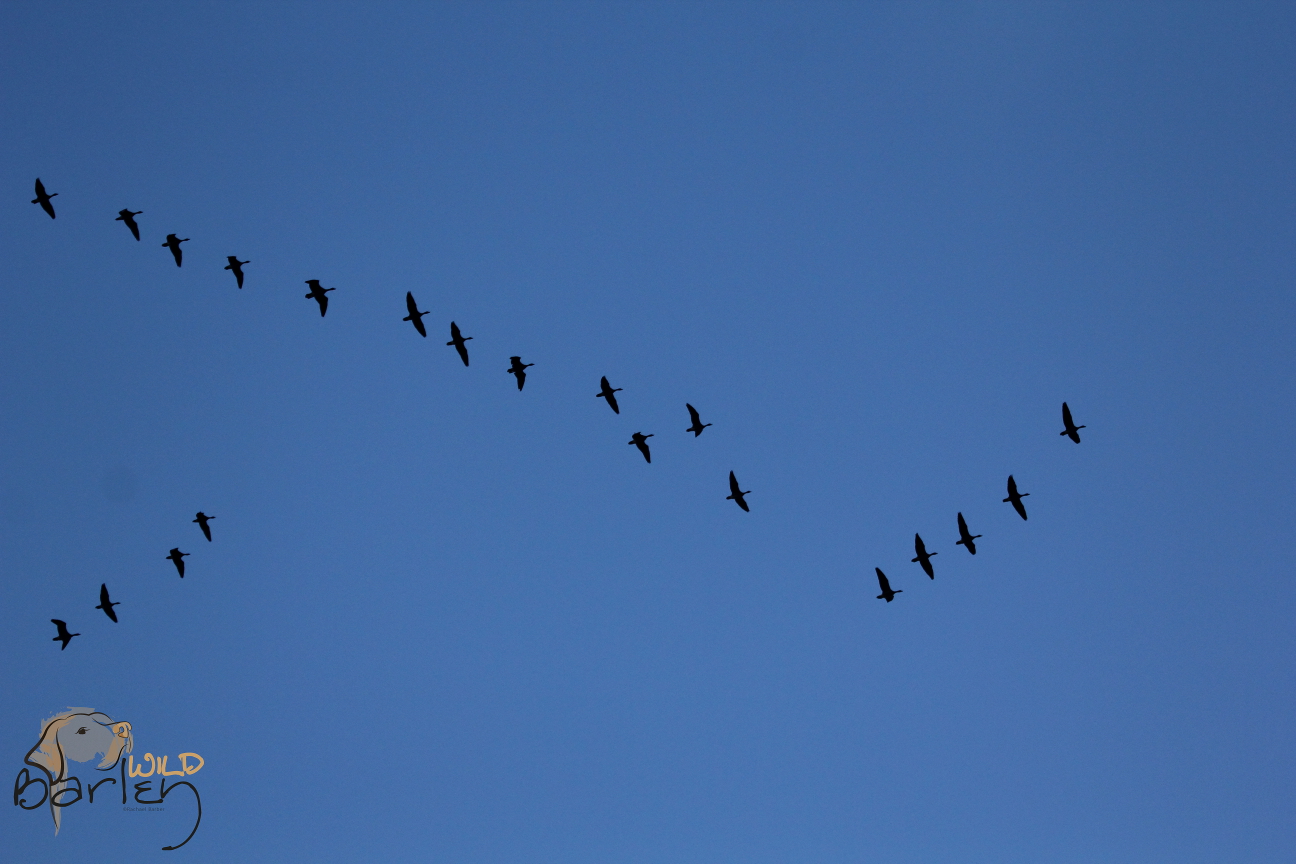 By now the sun has disappeared leaving a final trail of golden light and tinging the very tips of the clouds with pink. Above the sky is darkening. The water and mud of the estuary darkens to an almost purplely blue colour, and the waders are getting harder to see. In the sky above, against the deep dark blue, long ribbons of birds appear trailing across the sky, honking. Pink-footed Geese, hundreds and hundreds of them returning to the estuary to roost. On and on the skeins keep appearing, silhouetted against the final golden rays of sunlight on the horizon.