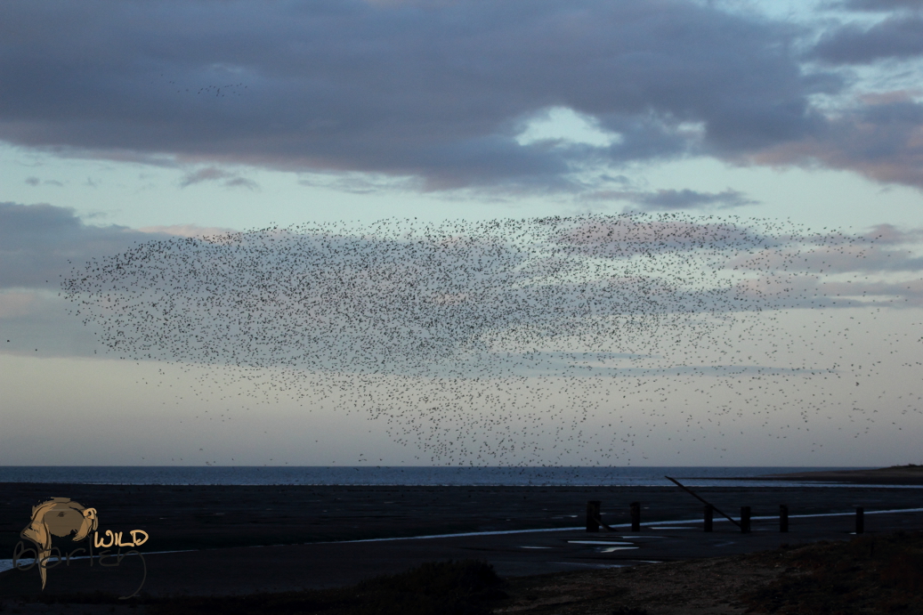 The sun was descending through a crisp blue sky, heading for the horizon along which a few remaining clouds drifted with curtains of rain. The sky above was still clear and blue, fading to pale blue and gold at the horizon. From behind the dark greyish blue clouds come streaks of sunlight. A blustery wind rips across the land, tugging at scraggly bushes and tall grass and creating ripples in the incoming tide of water. Silvery channels of water meander across the mud flats, occasionally blazing gold as it catches the rays of the setting sun. Across this darkening mudscape is a living carpet of birds. Ripples of movement spread through the throng, even in the fading light you can see the golden tinge to the birds feathers. They are Golden Plover. Further along and there is a black and white mass of Oystercatchers. Suddenly the birds lift in waves into the blustery air creating a whirling mass of tiny dark specks against the pale blue and gold of the sky. Pale flashes catch the light as the birds twist and turn as one. They swirl restlessly until resettling on the mud flats – the spectacle of thousands of waders being pushed up the estuary and beach by the incoming tide.