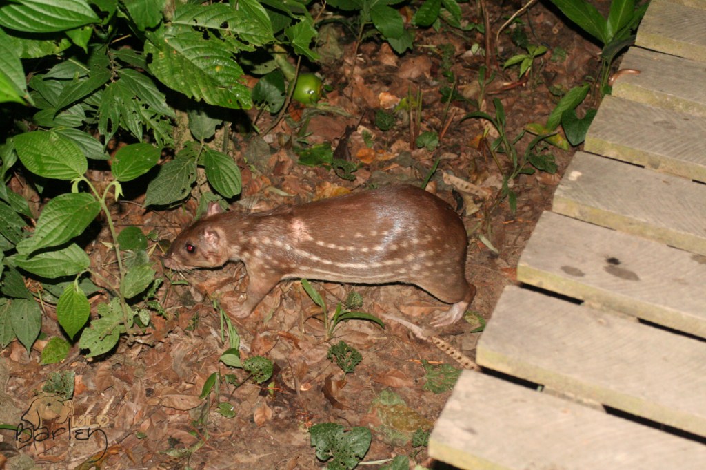Ultimately that was the aim for all the animals. It had successfully been done before with a number of monkeys, and other animals. Sometimes such individuals would return to the Lodge surrounds as Lee and I found out one night when we encountered a lovely paca (a large rodent with white spots down its flank). She had been released in February that year and occasionally made return visits.