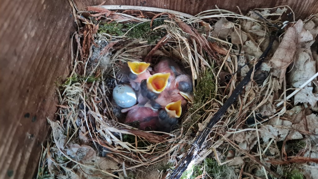 A week of checking nest boxes, excitedly peeking inside and hoping for chicks, steering clear of slugs, spiders, wasps and bees.