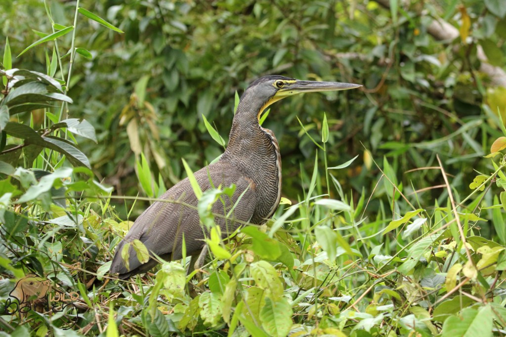 As we headed into one of the branches of the river, the water way narrowed and the trees on either side closed in. Water birds walked the edge of the river, picking their way past the tangle of branches and through grassy edges. Bare-throated Tiger Heron, Yellow-crowned Night Heron, Little Blue Heron, Green Heron, Great Egret, Snowy Egret. The boat slowed, creeping along slowly, quietly approaching the branches where a Boat-billed Heron perched staring back. Overhead, in the entwined branches a Green Ibis sat on a little knot of a nest silently watching us below.