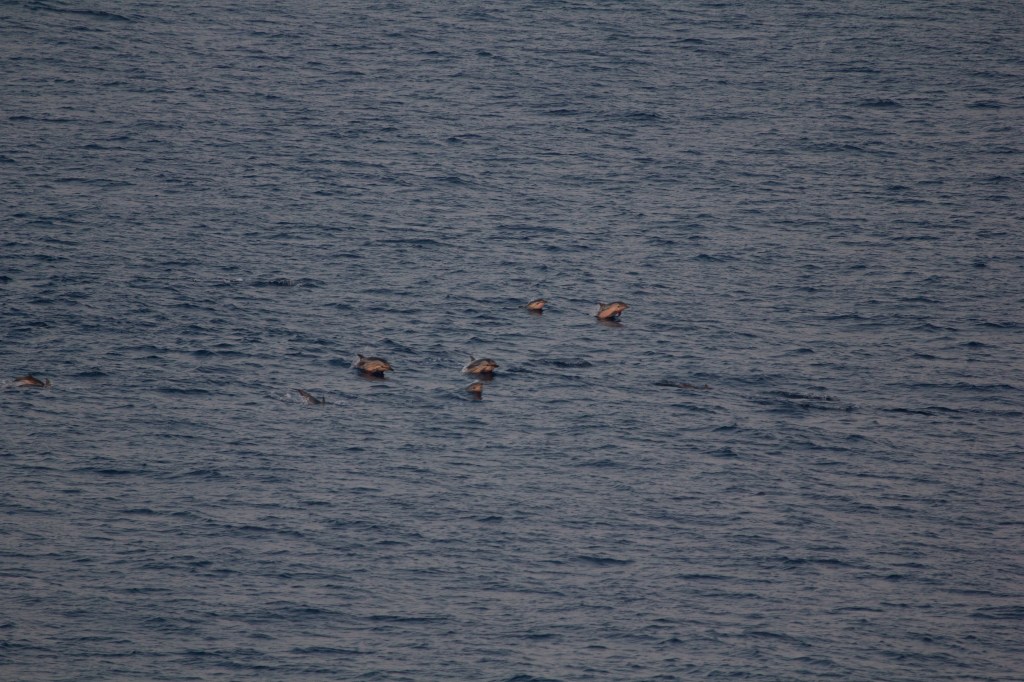 My first trip was in July when I helped guide on a new Sea Safari route between Portsmouth and Santander, on a new ferry for me the Santona. We left Portsmouth in the evening and so were just north of the French islands off Bretagne when we awoke at first light the following morning. Here we encountered many dolphins and seabirds, including one particularly exuberant bottlenose dolphin that kept repeatedly breaching clear of the water parallel to the ship. We spent the rest of the day trundling along heading for the continental slope and the deeper waters of the Bay. The timings didn’t quite work out for us and it was dark by the time we hit that drop where then seabed plunges over 2000 m and more. The next morning it was just about dawn as we were heading into the entrance to the long harbour at Santander. Heading back out later that day and despite the white caps and waves we picked up a big group of common dolphins. But the Bay was ominously quiet and there was not a blow of a whale to be seen… The next morning, waking up early again I was ‘greeted’ by a morning pass by a minke whale. The fog then descended and we spent the entire day heading up the English Channel and unable to see more than 200 m in any direction!