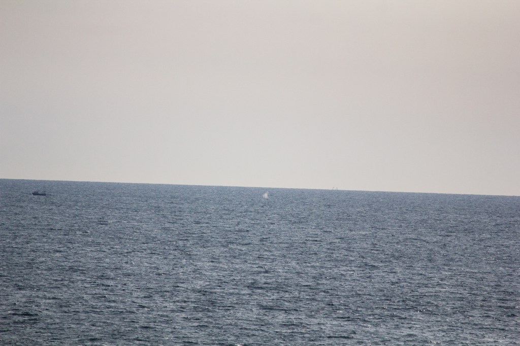 My final trip across the Bay in 2025 was in October. The nights were drawing in, and there was less time to survey, but it didn’t stop us from again observing huge bait balls of fish in the Channel, with tuna, common dolphins and minke whales. But once again there were no large whales in the Bay itself. We had travelled all the way down to Santander and back, were approaching the harbour entrance at Plymouth, had literally turned to each other to say 5 more minutes surveying and we’ll call it, I turned my head and whoosh a large blow on the horizon caught my eye. In the words of the Pont Aven’s Captain, we had travelled to Spain and back and see a whale right at the end on our doorstep.